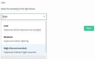 - Seleccione un nivel de sensibilidad para la alerta de luz. Tenga en cuenta que las alertas con mayor sensibilidad suelen generar más notificaciones de las deseadas. Le recomendamos probar estos niveles de sensibilidad para encontrar el más adecuado para su caso. Los niveles de sensibilidad son los siguientes:
