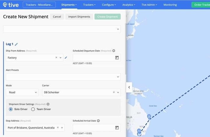 - Evite añadir alertas de impacto a los tramos de envío marítimo: Dada la larga duración de los tramos marítimos y el consumo de batería necesario para soportar el impacto, recomendamos encarecidamente no usar alertas de impacto en estos tramos. La batería de su rastreador podría no durar hasta el destino.