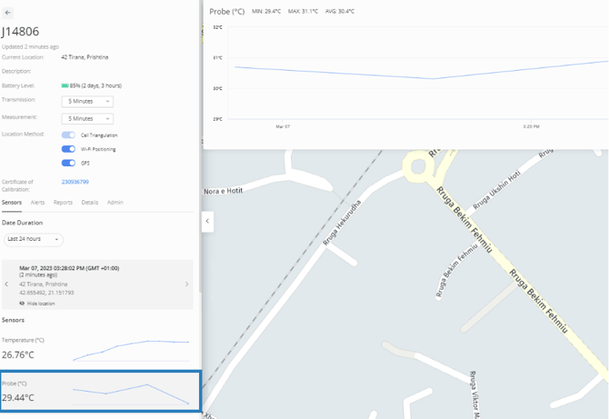 - Aparecerá un nuevo gráfico de sensores denominado “Sonda” en el panel izquierdo del rastreador o en los detalles del envío.
